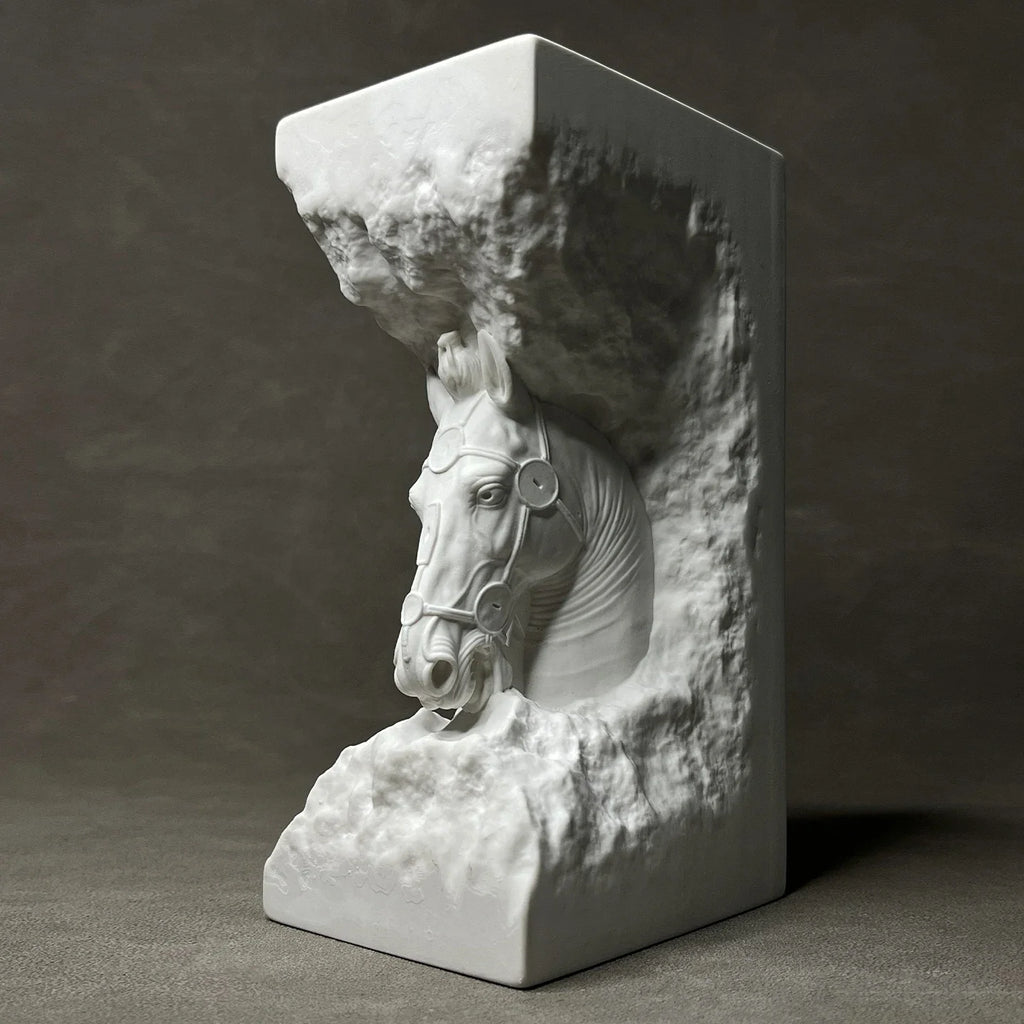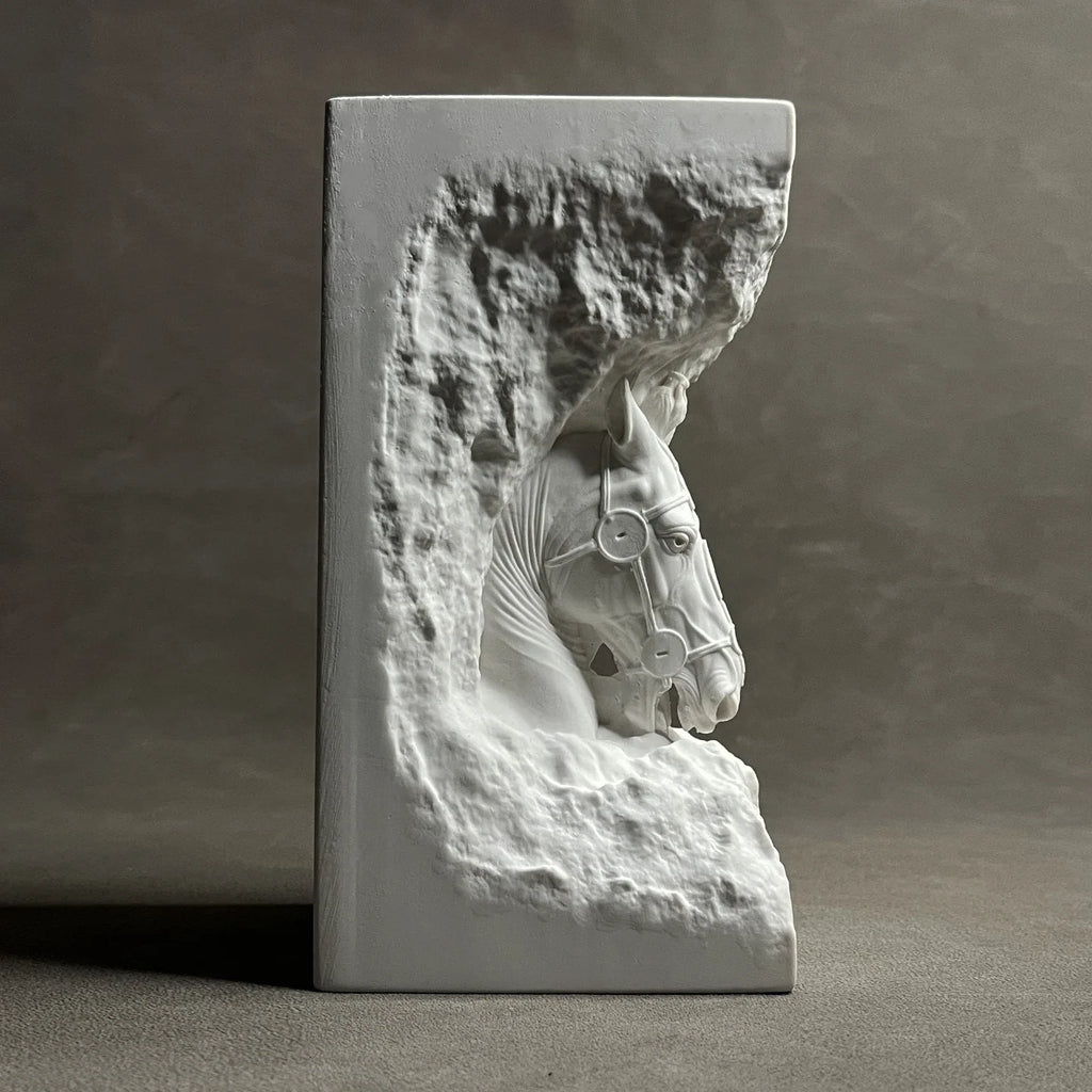 Introducing the Afralia™ Stone-carved Warhorse Head Statue, a stunning piece of ancient-style decorative horse sculpture that will add a touch of elegance and history to your home decor. Crafted from high-quality resin, this exquisite statue is designed to resemble a stone-carved warhorse head, bringing a sense of antiquity and sophistication to any space.