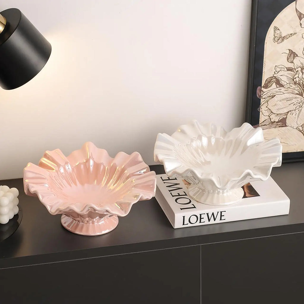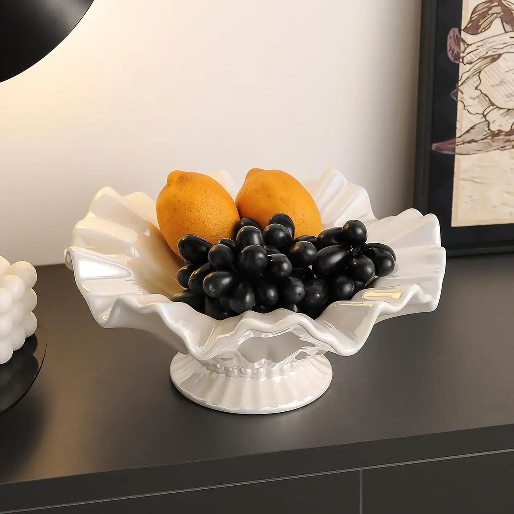 Afralia™ Wave Edge Ceramic Fruit Platter with High Legs: Stylish Home Decor and Snack Plate