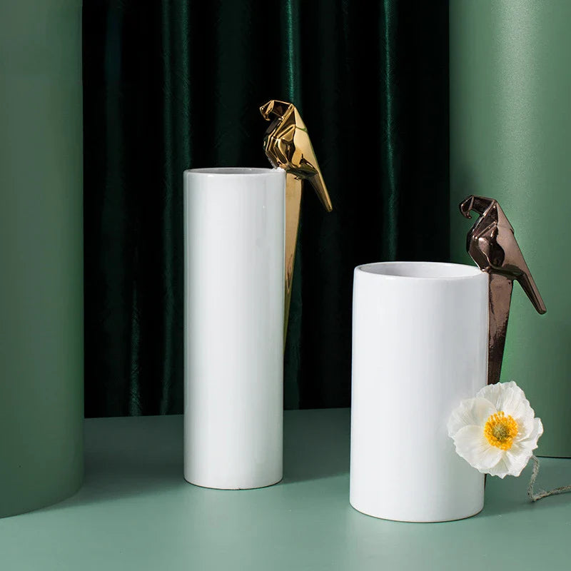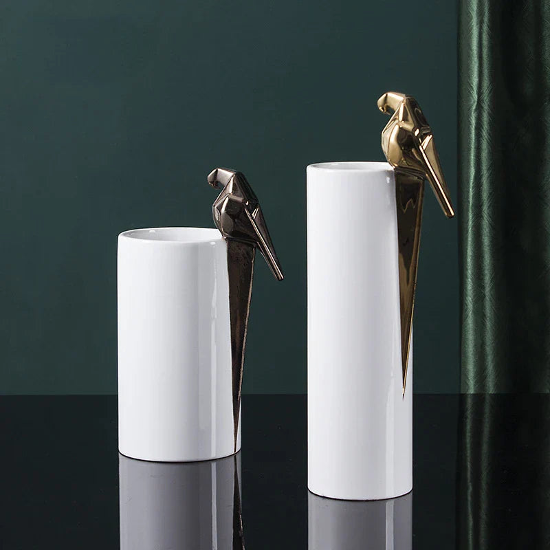 Introducing the Afralia™ Geometric Parrot Bird Sculpture Vase, a stunning addition to your home decor. This tabletop vase is not just a vessel for your floral arrangements, but a work of art in itself.