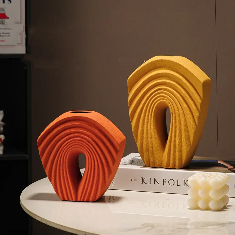 Afralia™ Geometric Folds Ceramic Flower Vase - Home Decor Handicrafts