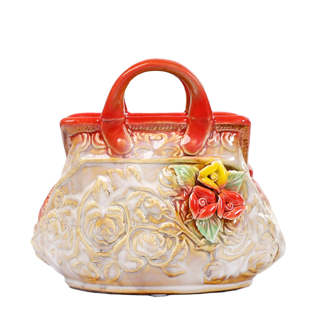 Afralia™ Ceramic Vase Handbag Embossed Flower Arrangement Home Decoration