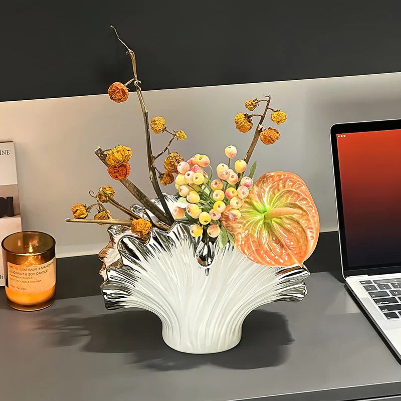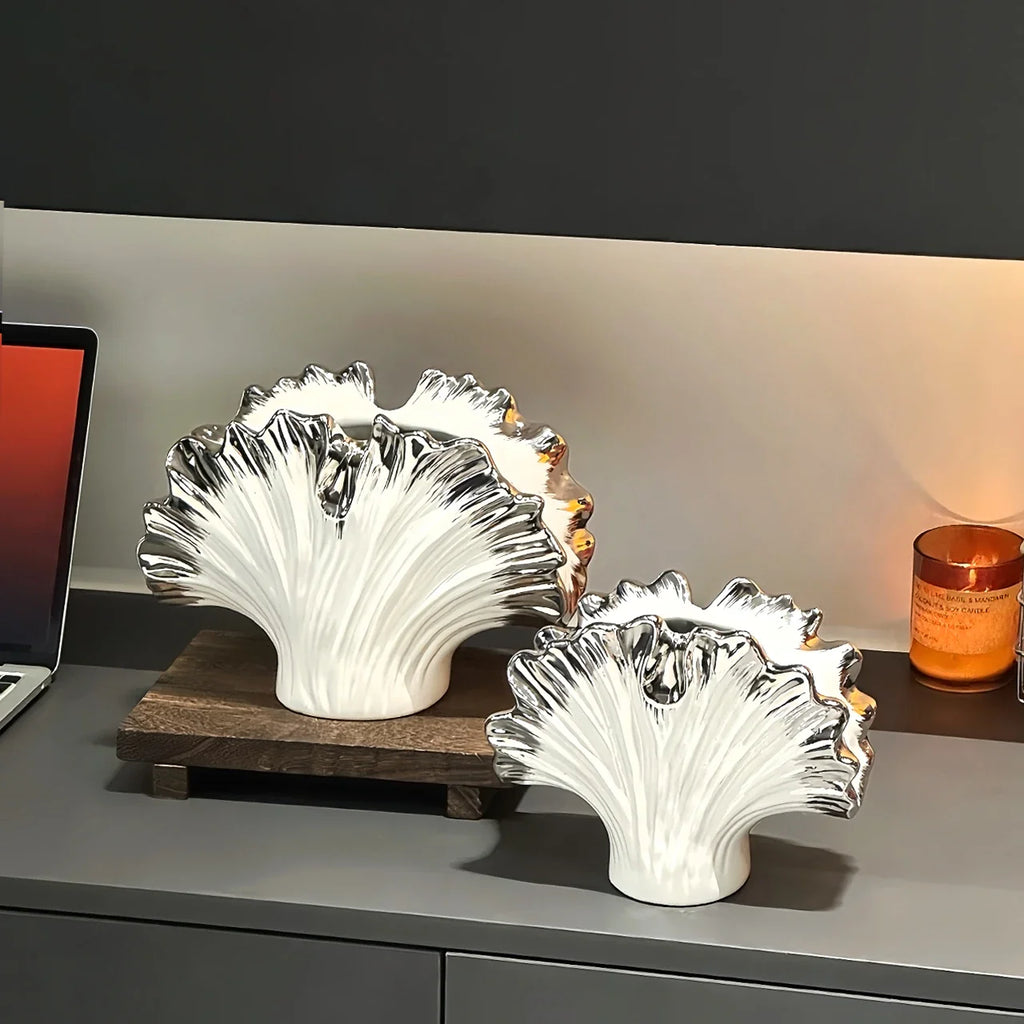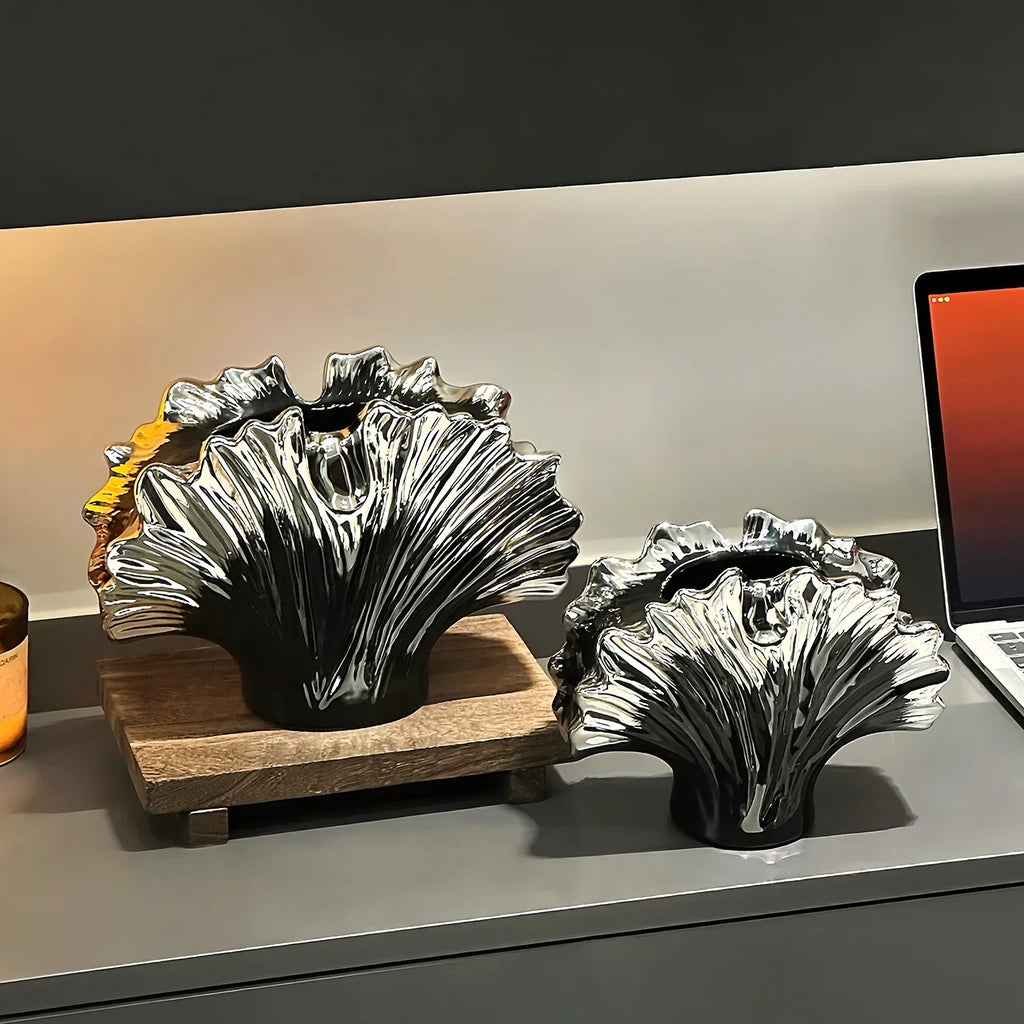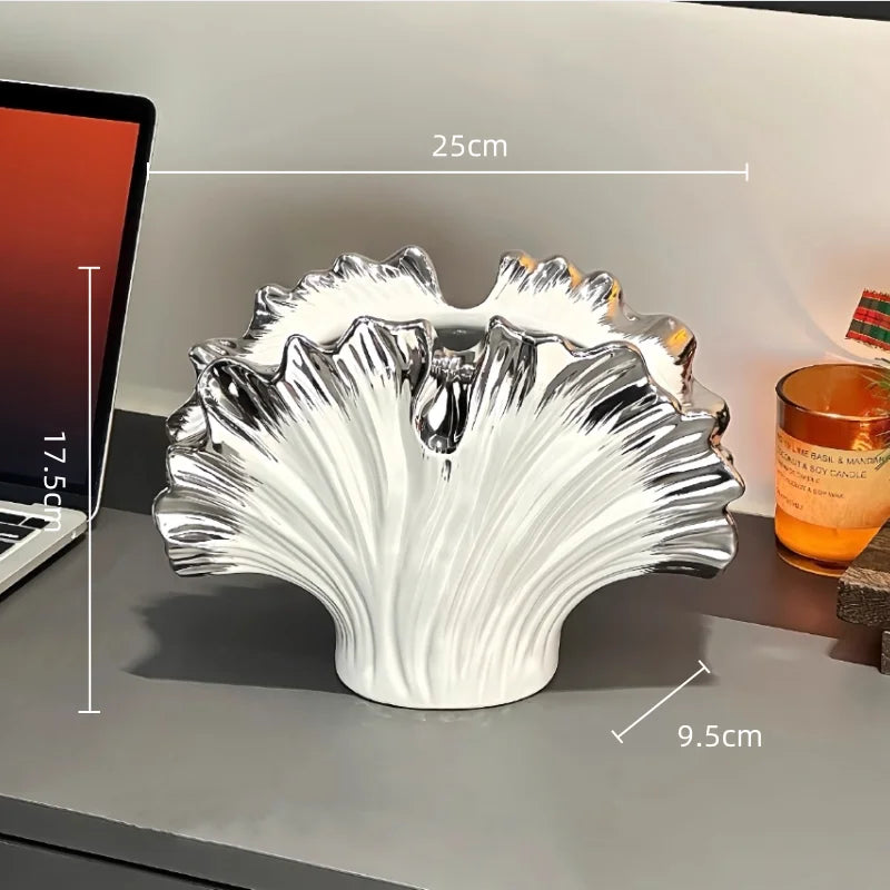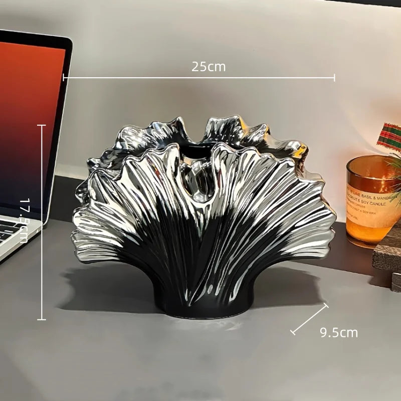 Elevate your home decor with the Afralia™ Silver Shell Vase, a stunning piece perfect for displaying your favorite flowers and adding a touch of elegance to any room.
