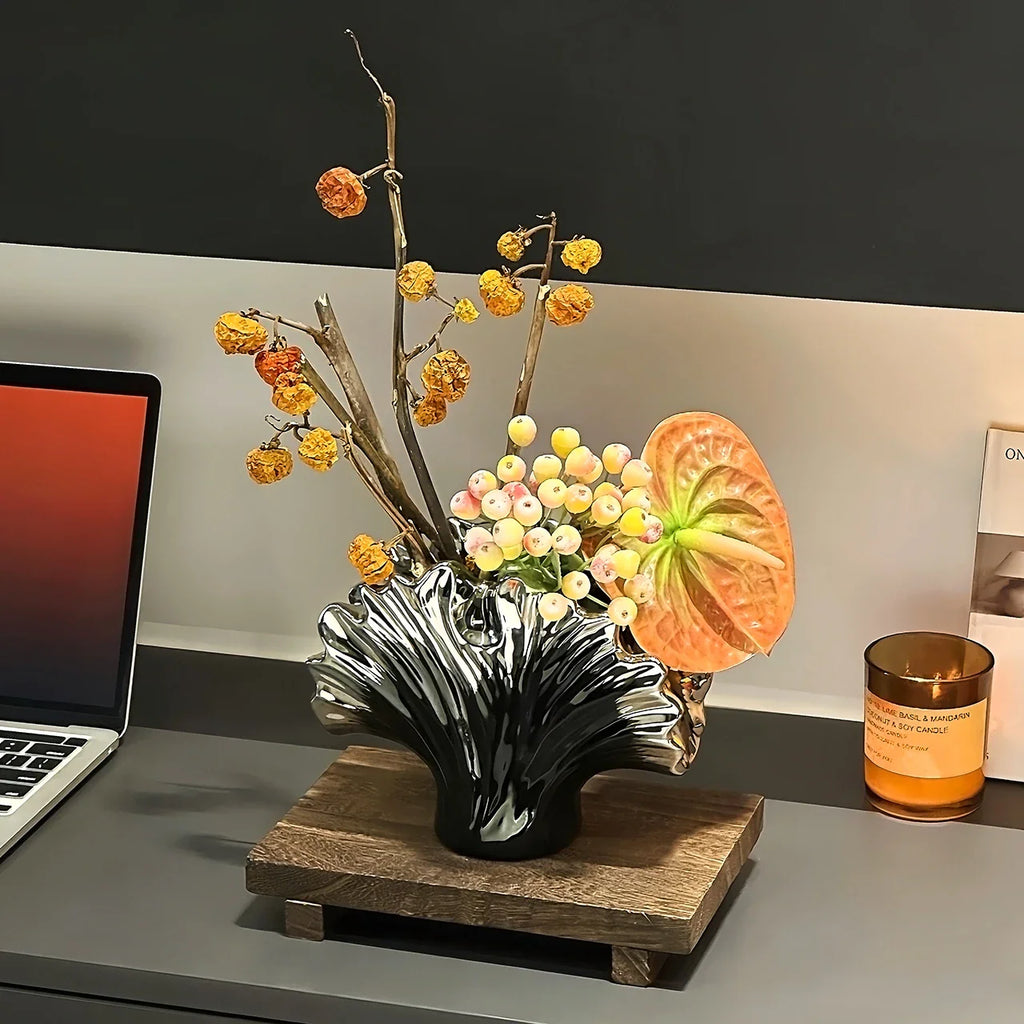Crafted from high-quality ceramic and porcelain materials, this tabletop vase exudes a modern style that effortlessly complements a variety of interior design aesthetics. The medium size of the vase makes it versatile for showcasing on a mantel, shelf, or dining table.