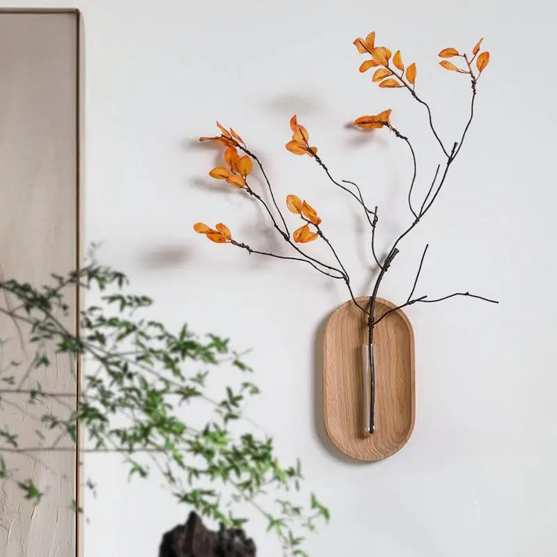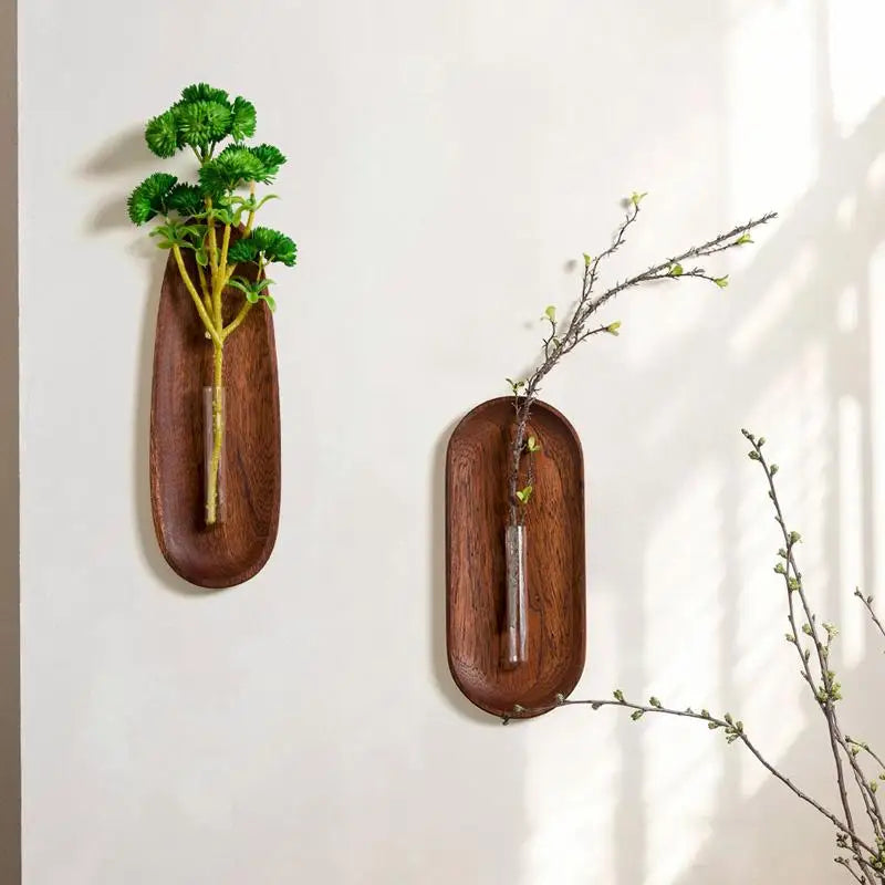 Afralia™ Wooden Wall-Mounted Flower Vase | Geometric Walnut Hydroponic Decor