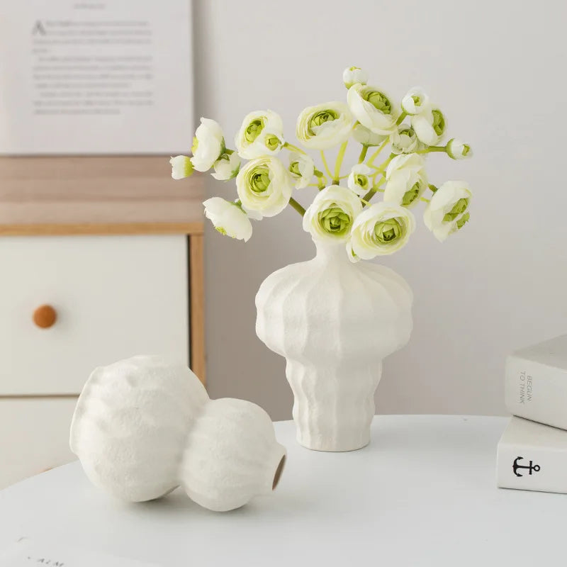 Afralia™ White Ceramic Irregular Fold Calabash Vase - Room Decoration Floral Arrangement Pot