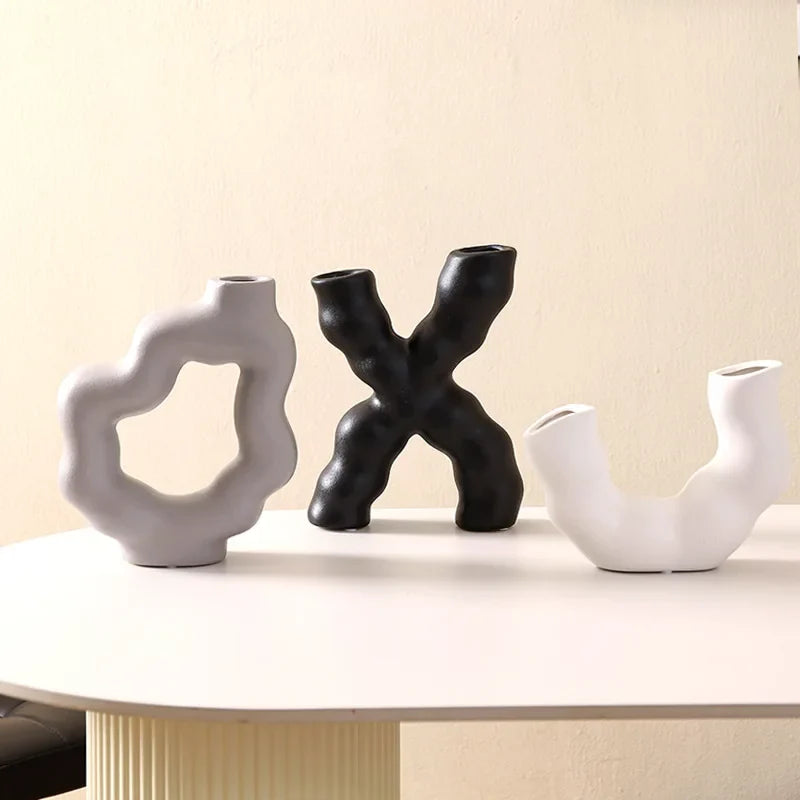 Afralia™ Geometric Ceramic Flower Vase for Stylish Home Decor & Flower Arrangement