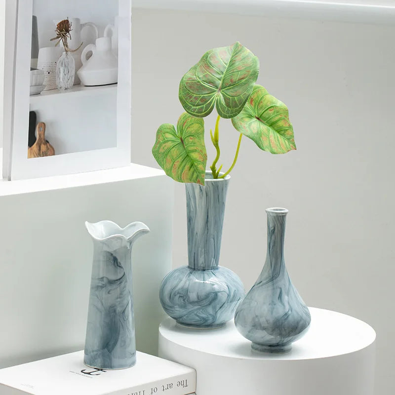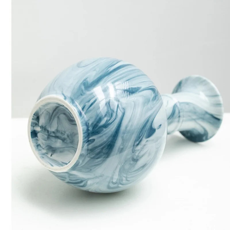 Afralia™ Marble Ceramic Vase Chinese Vintage Bottle Flower Arrangement Living Room Ornament