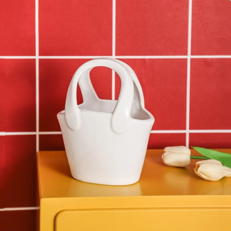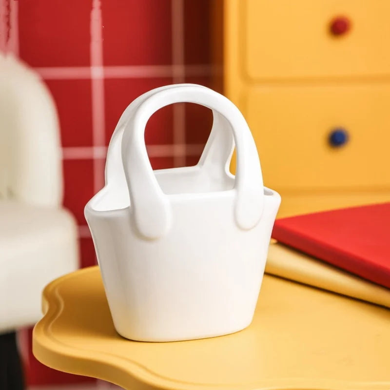 Afralia™ Ceramic Vase Handbag Terrarium Home Decoration Flower Arrangement Accessories