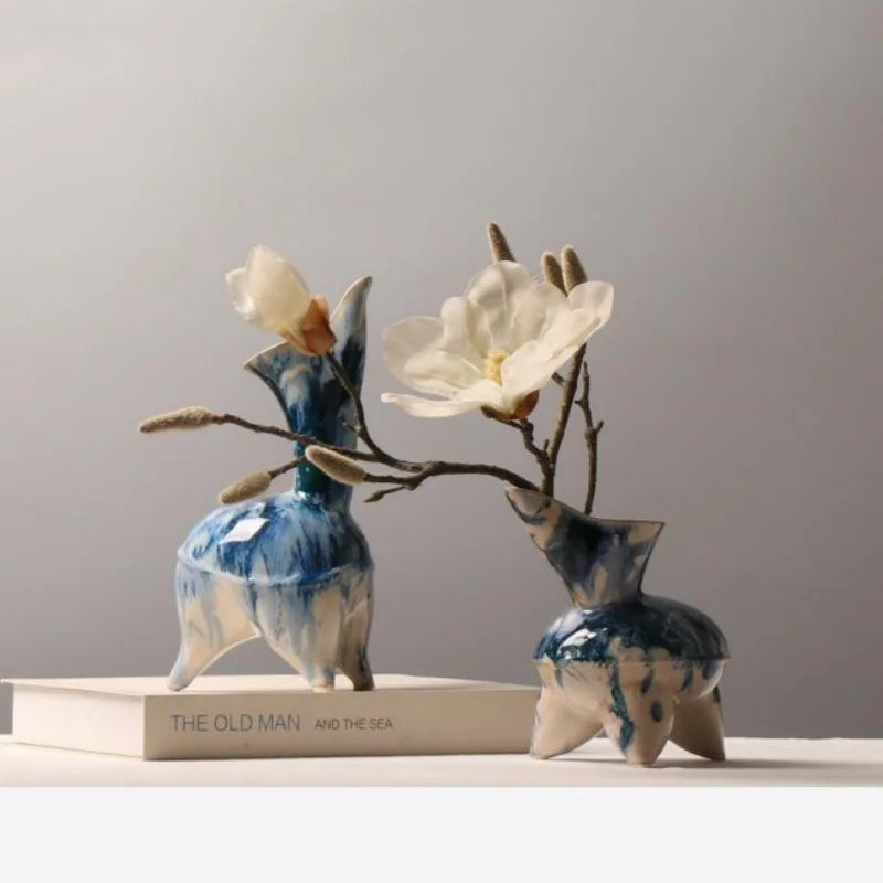 Afralia™ Irregular Ink Pattern Ceramic Flagon Vase - Chinese Porcelain Home Decoration