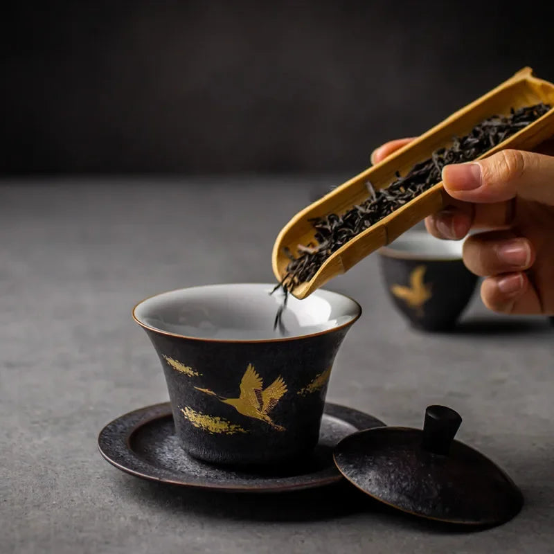 Afralia™ Handmade Ceramic Gaiwan Tea Cup Kung Fu Tea Set Tureen Drinkware