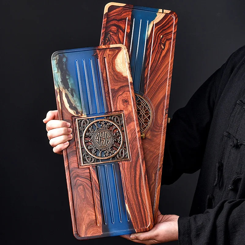 Discover the essence of elegance with our exquisite Afralia™ Handmade Wood Resin Tea Tray, a stunning Bubble Tea Table that seamlessly blends tradition and modernity for a truly unique Kung Fu tea experience.