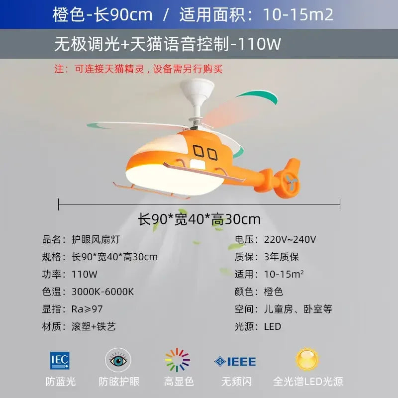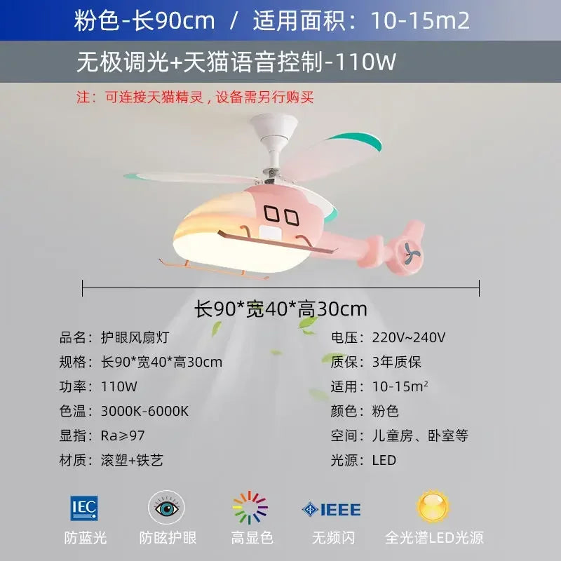 Afralia™ Helicopter Aircraft Ceiling Fan Children's Chandelier Blue Pink Light Kids' Room