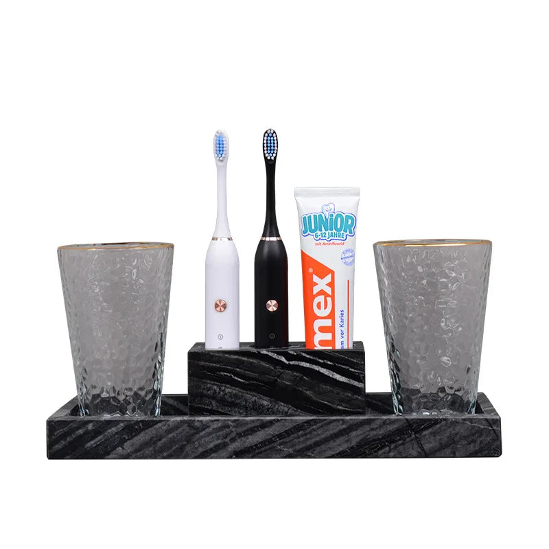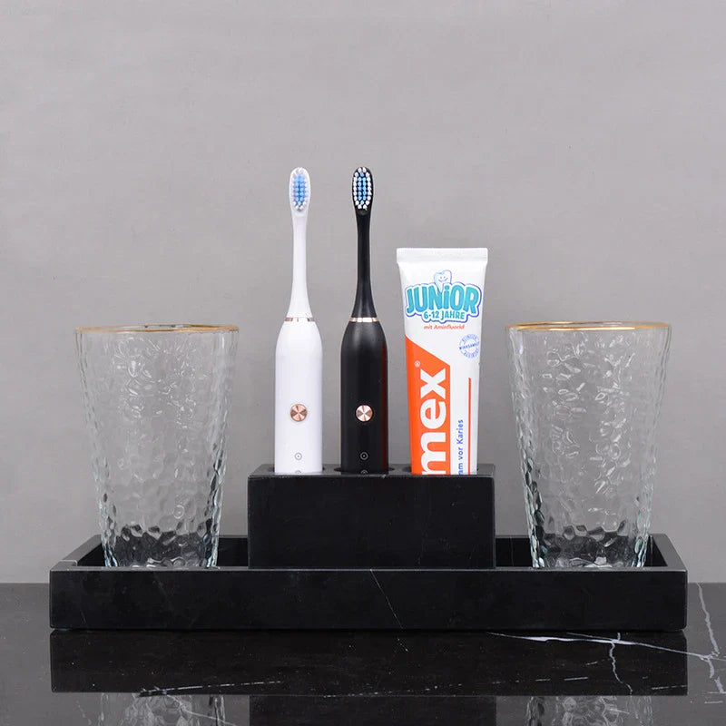 Afralia™ Marble Bathroom Accessories Set Electric Toothbrush Holder Glass Cup Tray