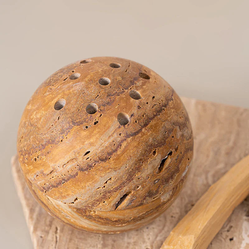 Afralia™ Travertine Marble Incense Burner Ball Shape Stone Holder Home Decor Tray