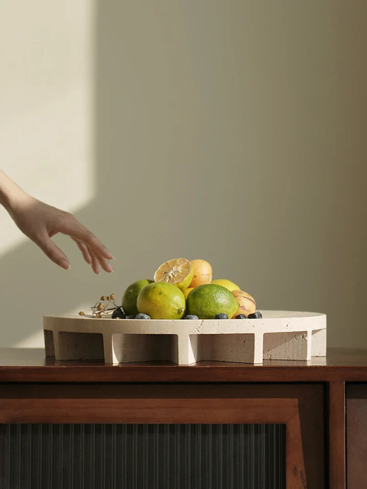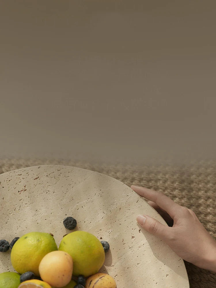 Crafted from high-quality travertine stone, this set features a beautiful beige color that adds a touch of elegance to any space. The large tray measures 35x5cm, while the smaller bowl measures 30x5cm, making it perfect for serving snacks, fruits, and coffee, or for displaying perfumes, aromatherapy bottles, jewelry, cosmetics, and keys.