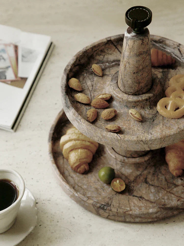 Afralia™ Marble 2 Tier Serving Tray Cupcake Stand Wedding Tea Party Dessert Stand