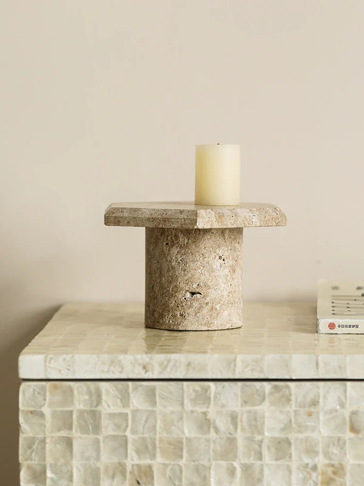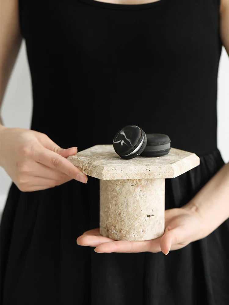 Afralia™ Beige Brown Travertine Hexagon Serving Tray Jewelry Plate Home Party Decor