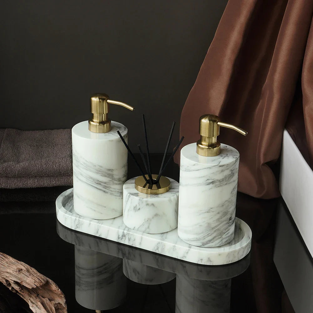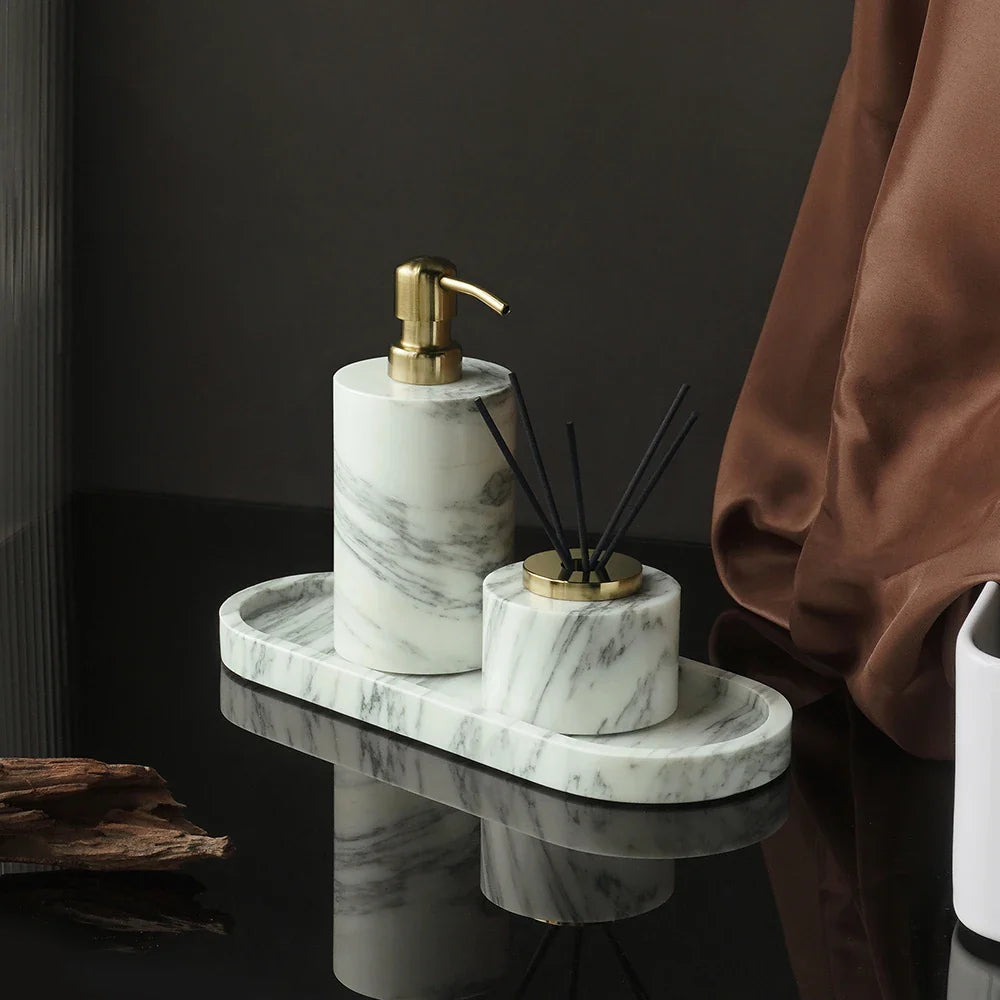 Afralia™ Marble Bathroom Set Soap Dispenser Cotton Swabs Jar Tray Accessories