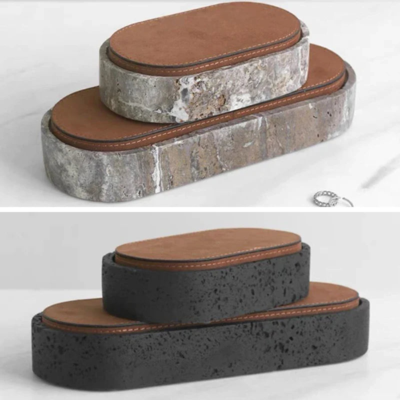 Afralia™ Natural Stone Oval Jewelry Box with Leather Cover
