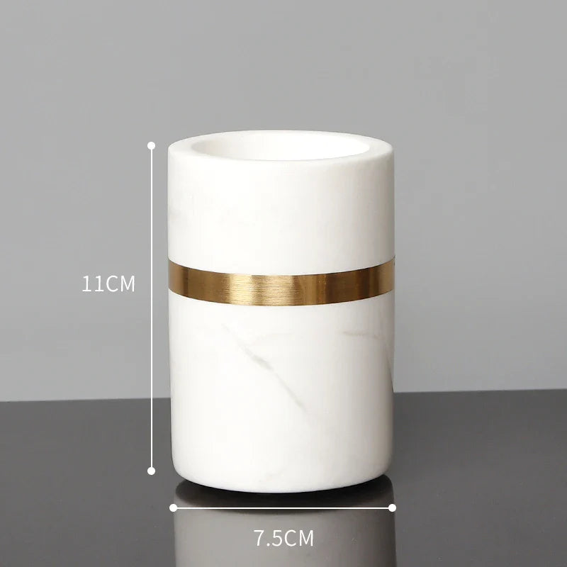 Afralia™ Volakos White Marble Bathroom Set with Golden Accents