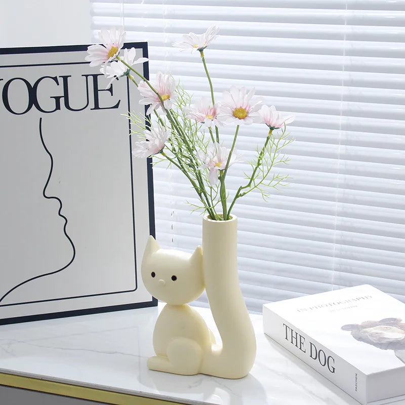 Afralia™ Ceramic Cat Vase Abstract Art for Home Decor and Indoor Living