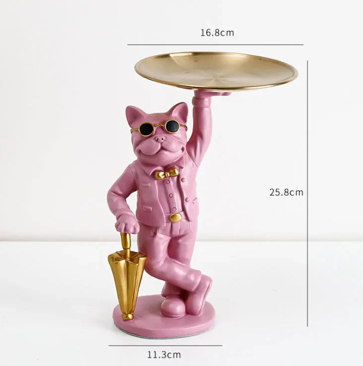 The Bulldog Resin Statue Tray features a modern style and an animal theme, making it a unique and eye-catching ornament for animal lovers and art enthusiasts alike. Its intricate details and fine craftsmanship make it a standout piece that is sure to spark conversations among guests.