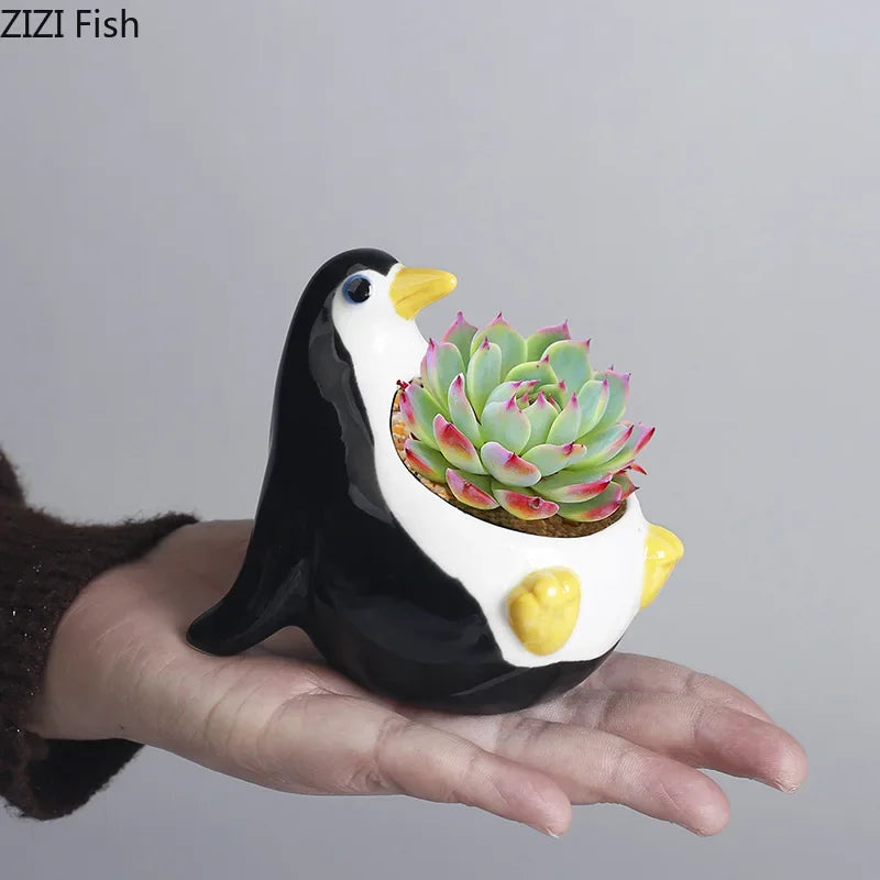 Afralia™ Penguin Ceramic Vase Small Plant Pots Room Decoration Flower Arrangement