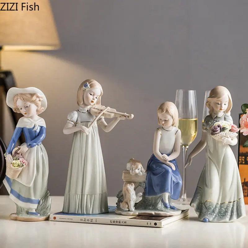 Afralia™ European Girl Ceramic Statue Decor - Modern Porcelain Figure Sculpture