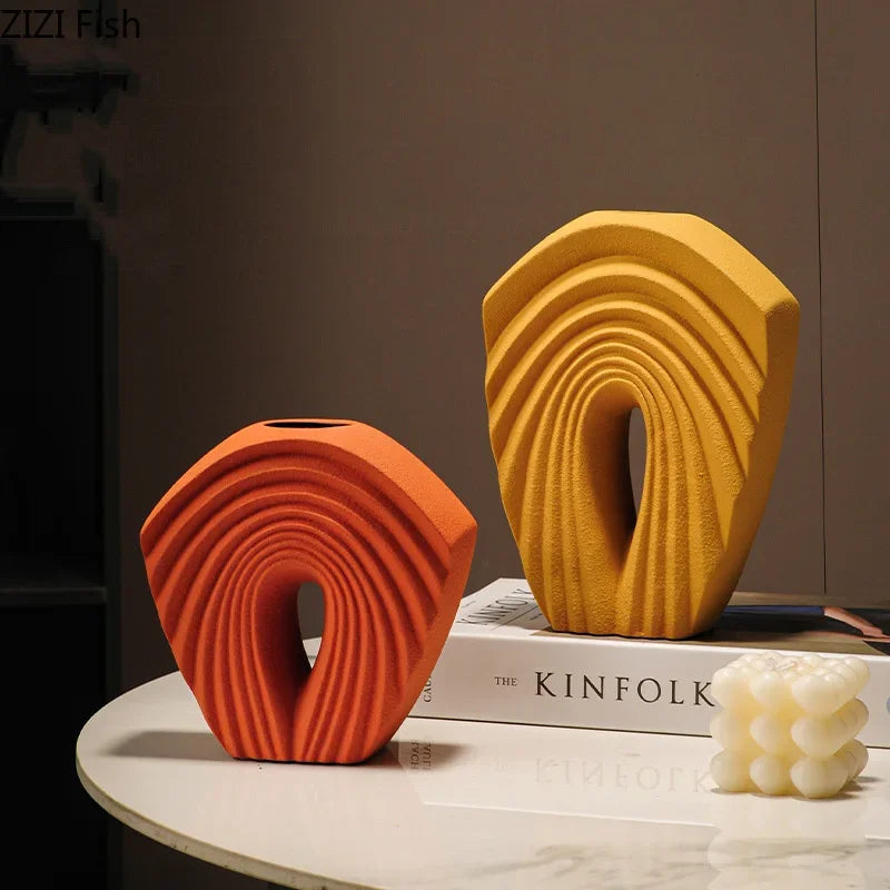 Afralia™ Geometric Ceramic Vase Set for Modern Floral Arrangements