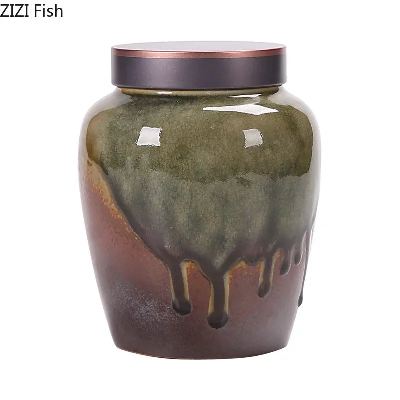 Afralia™ Colored Glaze Ceramic Tea Canister Jar Desk Decoration Candy Pot