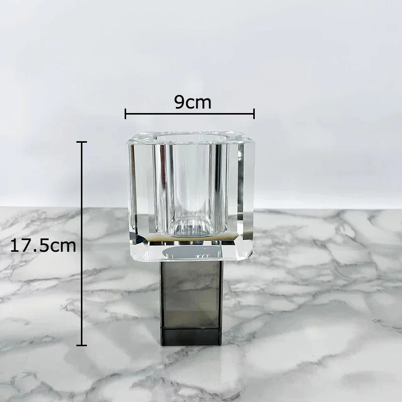 Afralia™ Geometric Square Glass Vase Artificial Flowers Modern Floral Arrangement