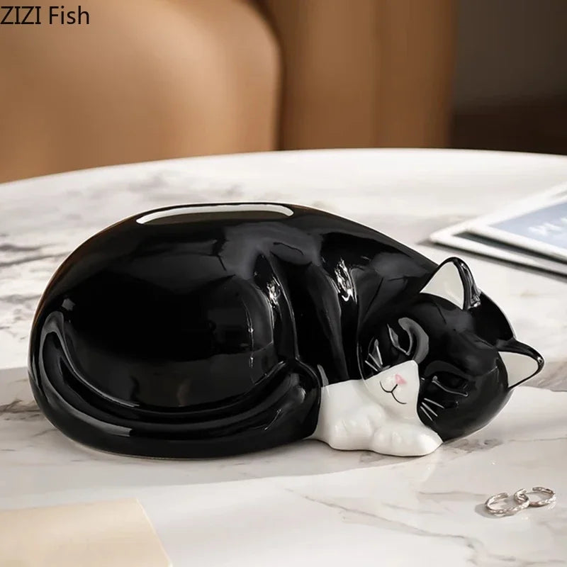 Afralia™ Ceramic Cat Tissue Box - Desk & Bedside Table Decoration