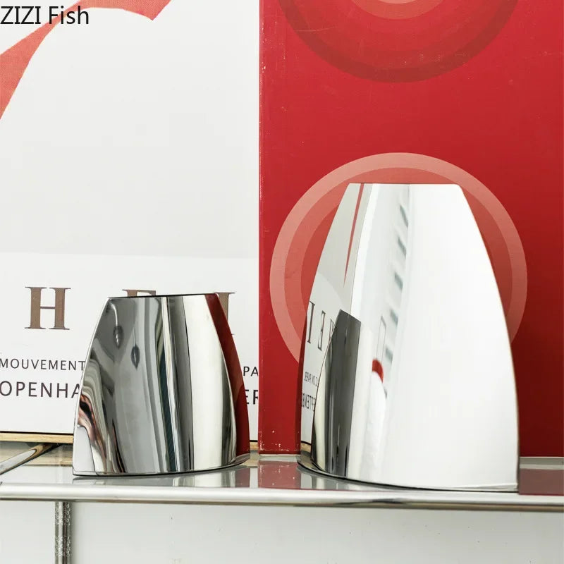 Afralia™ Silver Arc Metal Vase, Desk Decoration, Floral Vase, Room Decor Aesthetic