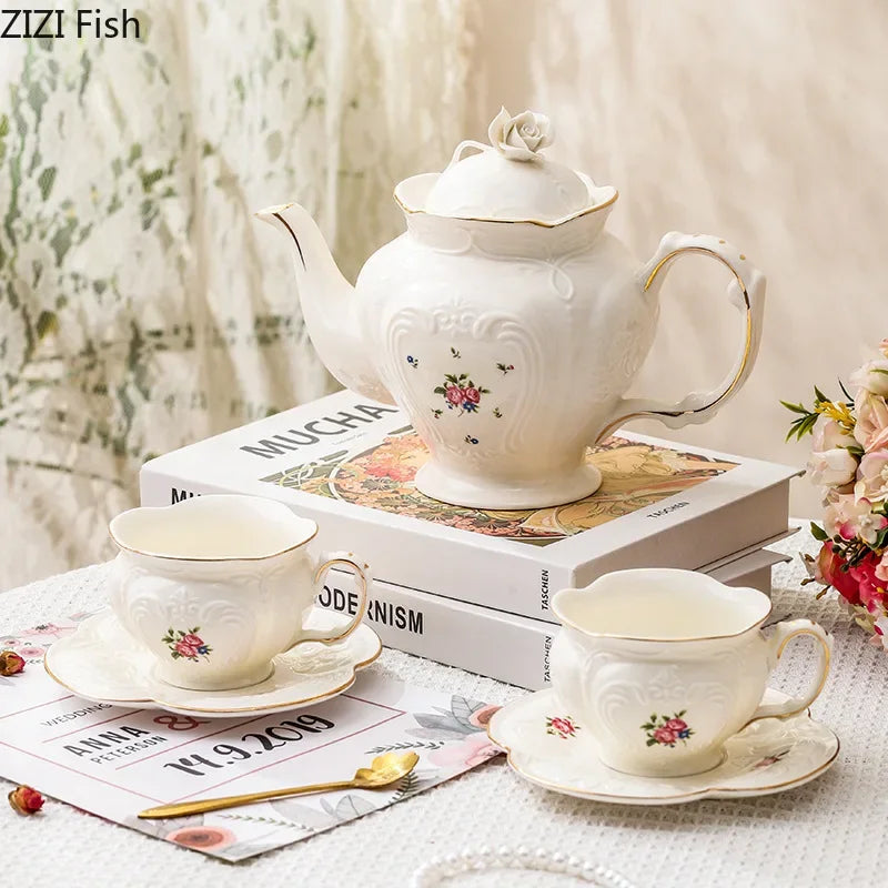 Afralia™ Ceramic Tea Set Dining Table Elegant Floral Collection