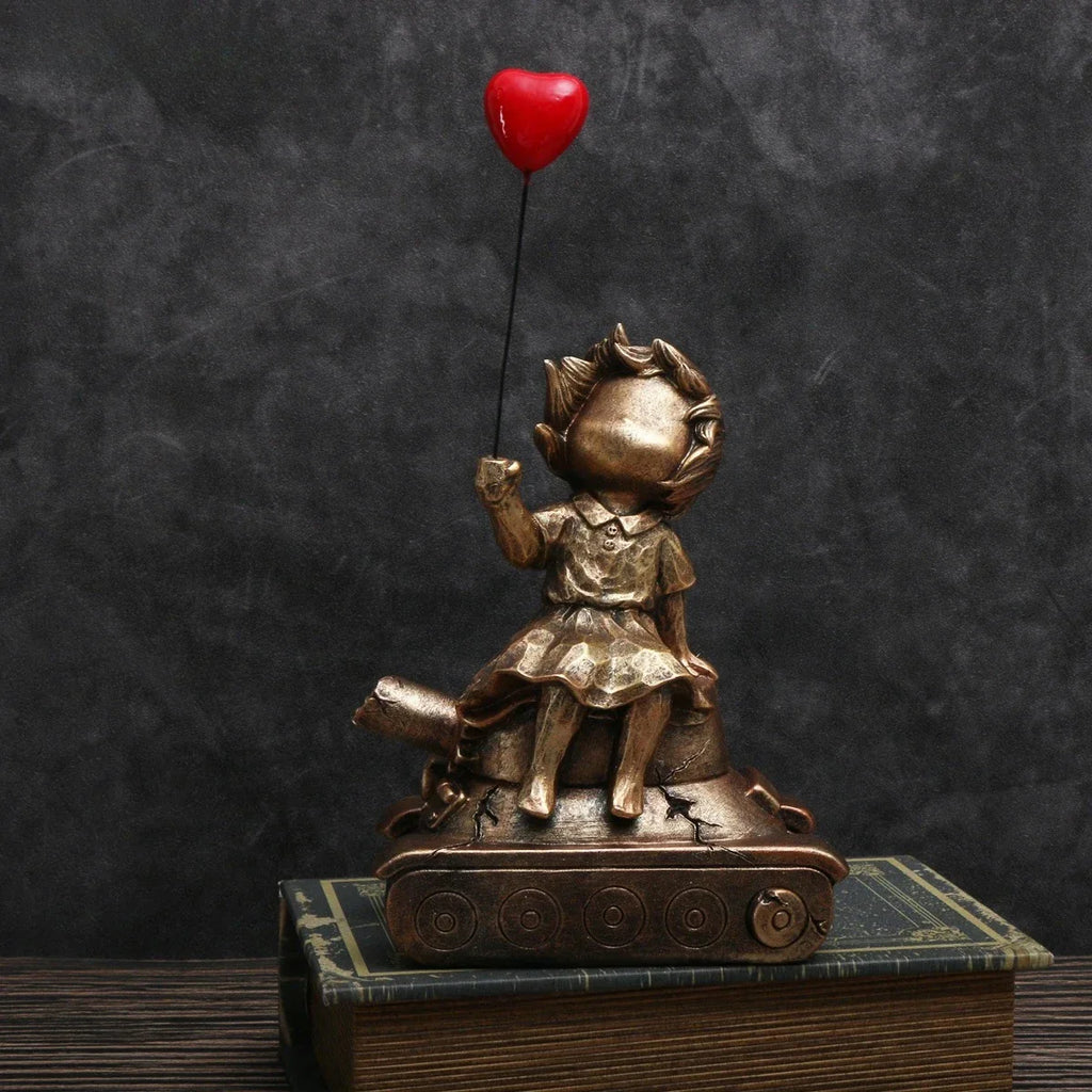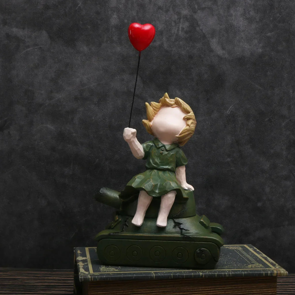 Afralia™ Balloon Girl Tank Art Figure Resin Statues Collection for Interior Decor