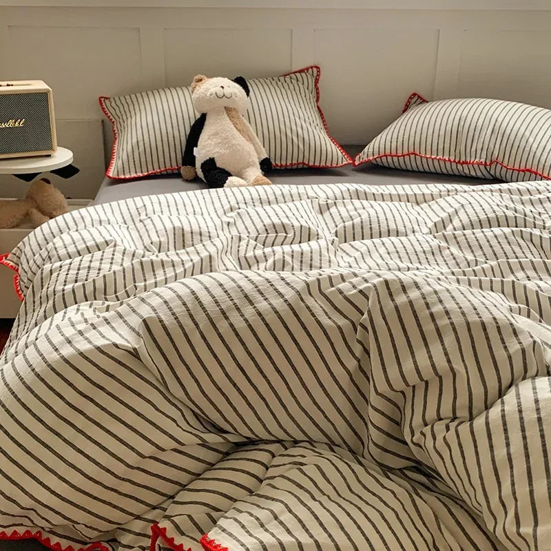 Introducing the Afralia™ Striped Pure Cotton Bedding Set, a luxurious addition to your bedroom that offers unparalleled comfort and style.
