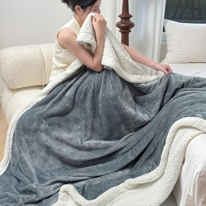 Introducing the Afralia™ Double-Layer Coral Fleece Jacquard Blanket, a versatile and cozy addition to your home or travel essentials.