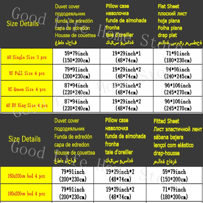 Whether you have a 150x200cm bed, US Full size, AU Double size, AU Single size, 180x200cm bed, US Queen size, or AU EU King size, we have the perfect fit for your bed with our size options. Each set comes with 4 pieces to complete your bedding ensemble.