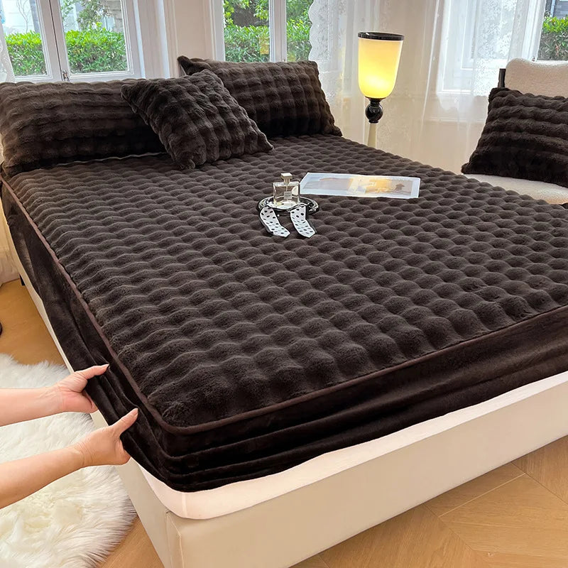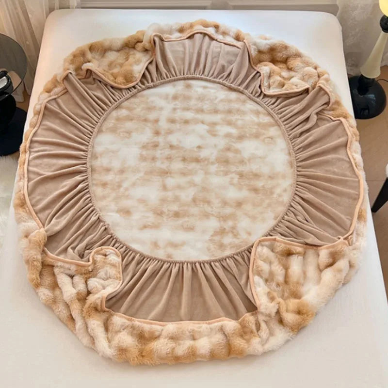 Afralia™ Faux Rabbit Plush Coral Fleece Fitted Sheet for Single Bed in Autumn/Winter
