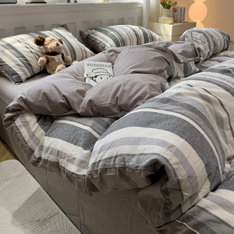 Indulge in the timeless elegance of the stripe design, perfectly suited for Northern European aesthetics. The set weighs between 1.2kg to 1.5kg, striking the ideal balance between lightweight comfort and warmth.