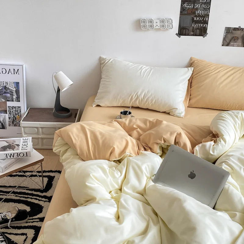 Made from cotton with a fabric construction of 100gsm, this bedding set is soft, breathable, and easy to care for. The yarndyed fabric style adds a touch of elegance, while the solid color design brings a modern look to your bedroom. The set includes a duvet cover, 2 pillowcases, and 1 fitted sheet, providing you with everything you need for a complete bedding ensemble.