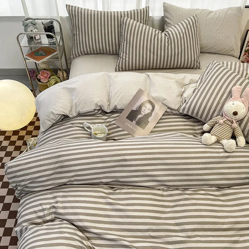 This 4-piece set includes a duvet cover, 2 pillowcases, and 1 sheet, making it a complete bedding solution for your bedroom. The yarndyed fabric style adds a touch of elegance, while the simple design complements a wide range of decor styles in North America.