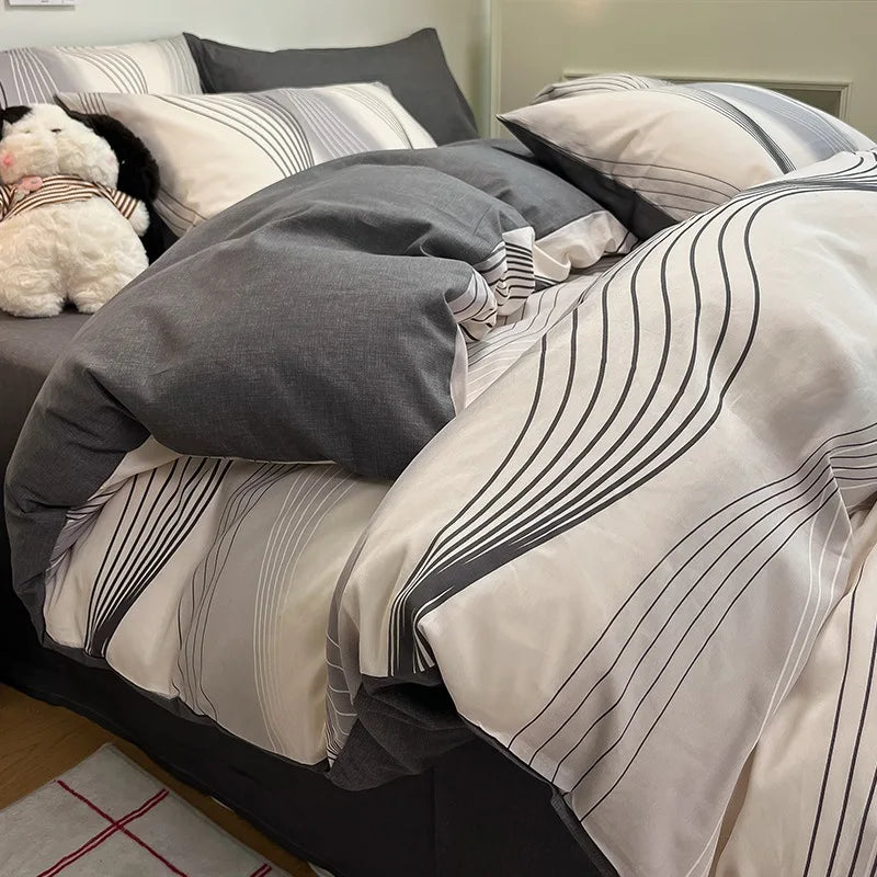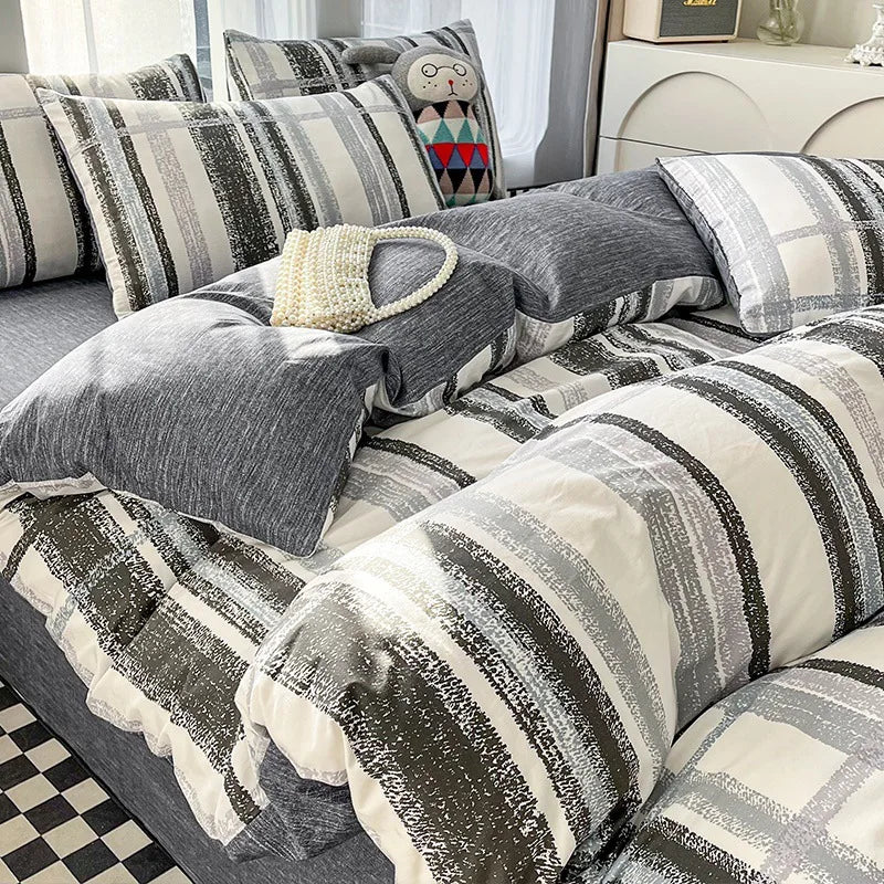 With a weight of 2.5kg-2.6kg, this bedding set is lightweight yet warm, making it suitable for year-round use. The striped design brings a modern and trendy look to your bedroom, perfect for those who appreciate Northern European style.