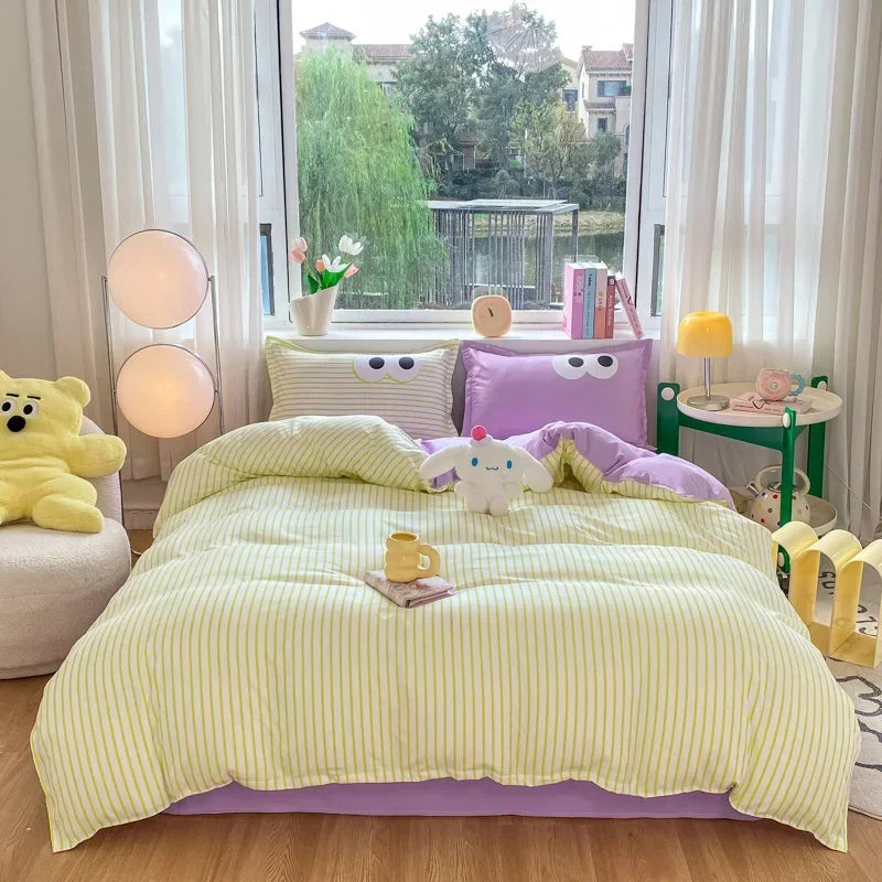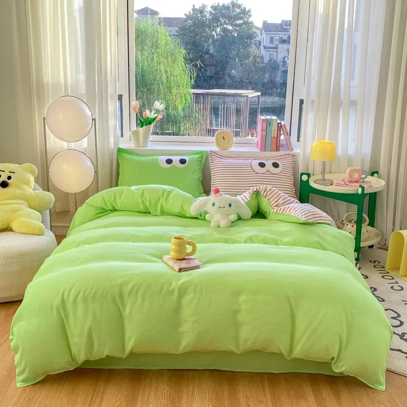 Our Cartoon-themed design is suitable for Northern European aesthetics, bringing a playful yet elegant look to your space. The 4-piece set is available in various sizes ranging from 1.2m to 2.2m, catering to different bed dimensions.