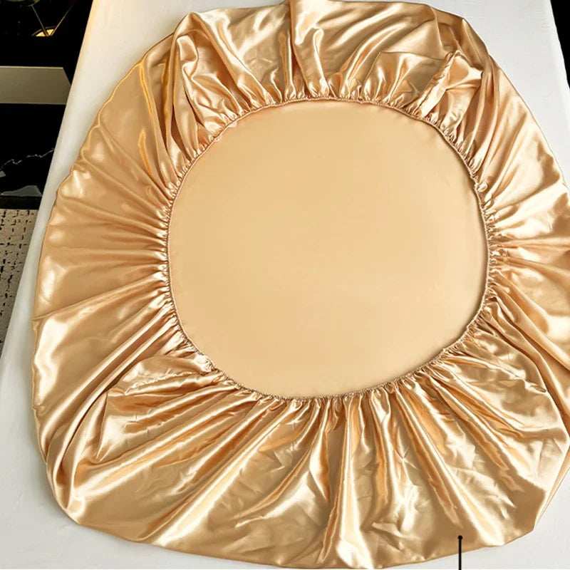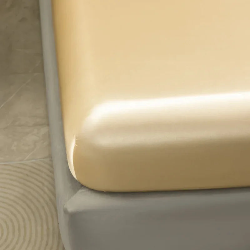 Experience the ultimate luxury and comfort with our Afralia™ Silky Satin Fitted Sheet Set. Designed for Queen and King size beds, this set includes a fitted sheet with deep pockets for a perfect fit, along with 2 pillowcases to complete the look.