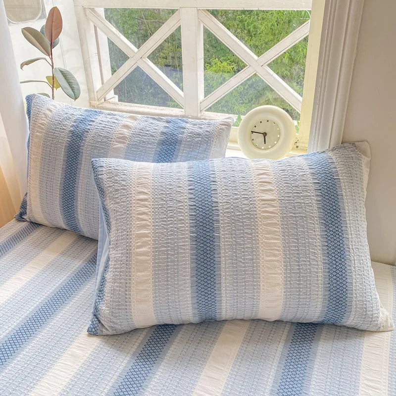Available in a range of calming colors including Blue, Pink, Coffee, Gray, and Green, this fitted sheet set is bound to complement any bedroom decor. The jacquard weaving technique adds a touch of sophistication, while the yarn-dyed stripes offer a timeless appeal.