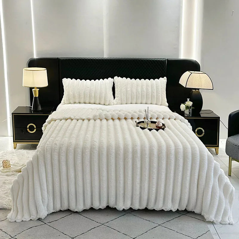 Introducing the Afralia™ Ribbed Lamb Plush Blanket - a luxurious addition to your home decor that promises unparalleled comfort and style. Crafted with the finest materials, this faux rabbit velvet wool throw blanket is designed to elevate your cozy nights in.