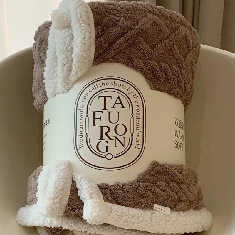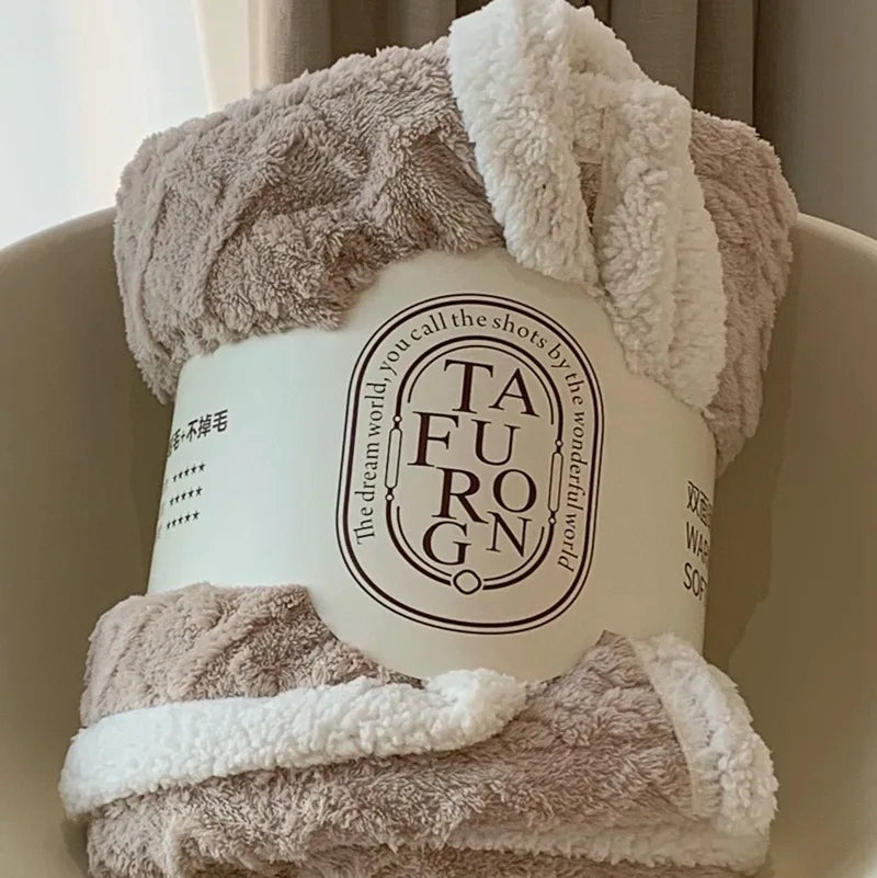 Introducing the Afralia™ Cozy Jacquard Coral Fleece Blanket, a luxurious addition to your home decor that combines both style and comfort.