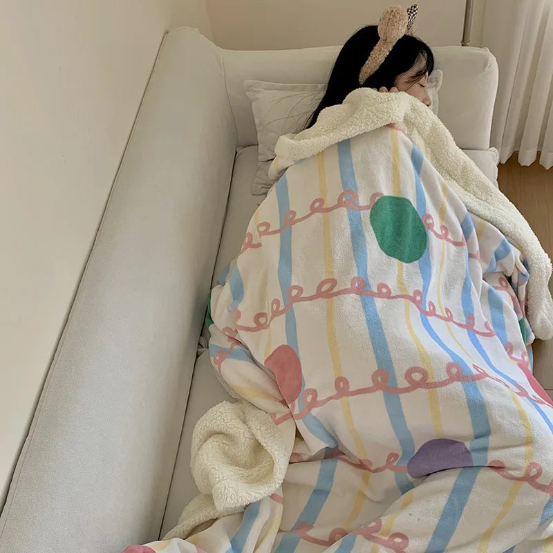 Introducing the Afralia™ Cartoon Lamb Wool Blanket - a must-have for cozying up during the chilly winter months. This thick, printed coral fleece sofa cover is designed for adults who appreciate quality and style in their home decor.