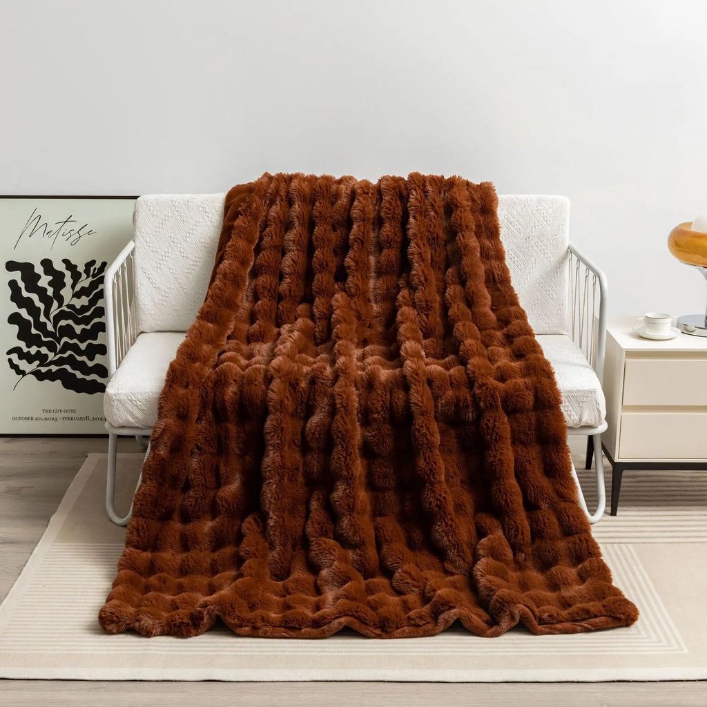 Introducing the Afralia™ Faux Rabbit Fur Flannel Sofa Blanket, a luxurious addition to your home decor that combines style and comfort effortlessly. Crafted with the finest materials, this blanket is perfect for adults looking for a cozy companion during the winter months.